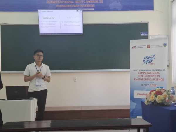 Tại The 2nd International Conference on Computational Intelligence in Engineering Science (ICCIES 2026), anh Vũ Quang Hải (cựu sinh viên nhóm GEOI) đã trình bày công trình nghiên cứu với tiêu đề “Research And Development Of A Crop Identification Map Using Multi-Source Remote Sensing Data”. Đây cũng là kết quả từ khóa luận tốt nghiệp của Hải trong quá trình học tập và nghiên cứu tại trường.